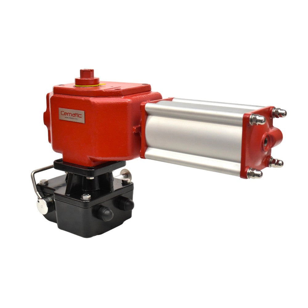 El actuador neumático, es un tipo de pistón con brazo de manivela, en el que el aire comprimido empuja al pistón linealmente a través del cilindro, y el movimiento lineal se transforma en un cuarto de vuelta de rotación a través del brazo de manivela.