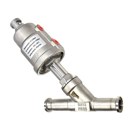 Optimiza tus procesos con nuestra válvula clamp de asiento inclinado, diseñada para ofrecer un control preciso del flujo en líneas sanitarias. Fabricada en acero inoxidable 316 para garantizar una excelente resistencia a la corrosión, ideal para aplicaciones en las industrias farmacéutica, alimentaria, cosmética y de bebidas. Su Asiento Inclinado, proporciona un flujo más eficiente y menor pérdida de presión.